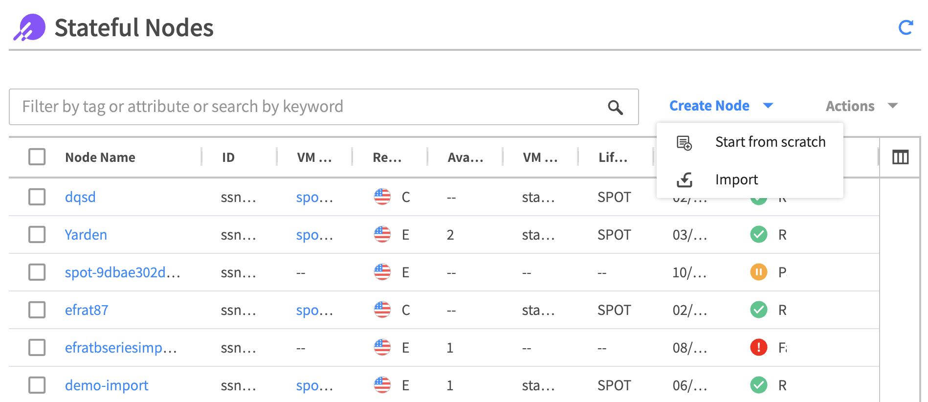 Click + Add Tag to add tags you want the VMs to be created with. Tagged stateful nodes can be filtered by tag keys and values on the Stateful Nodes page.